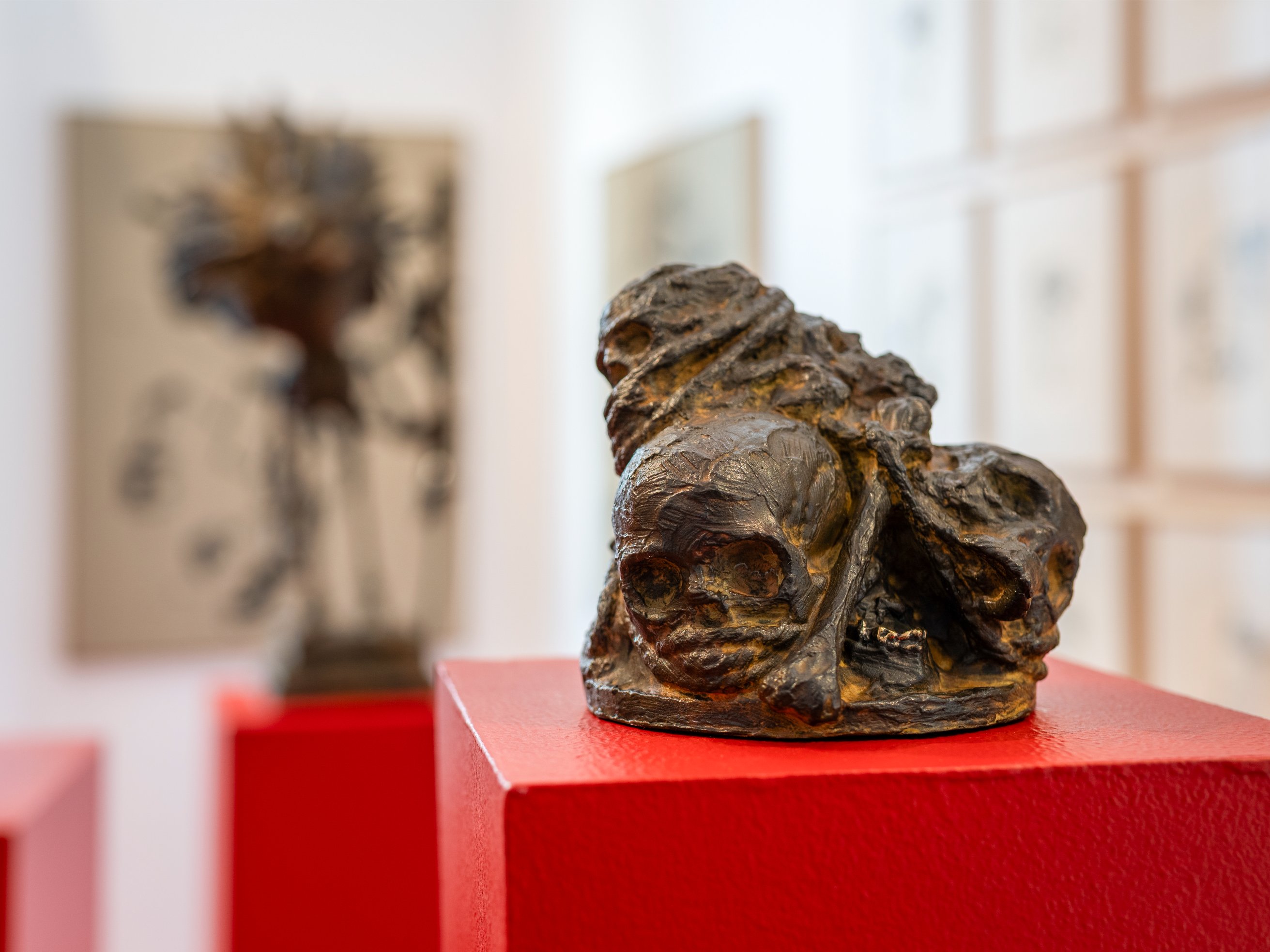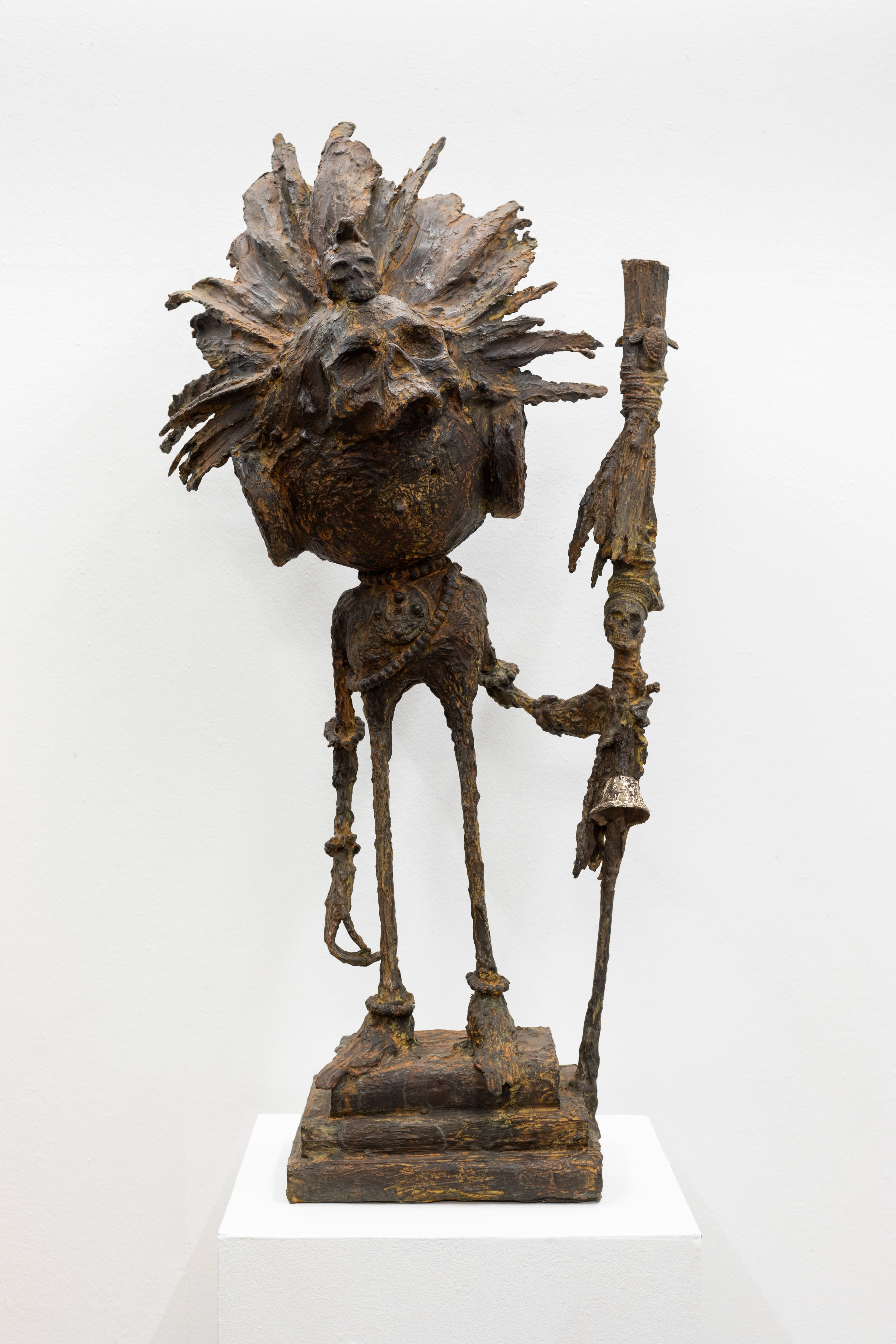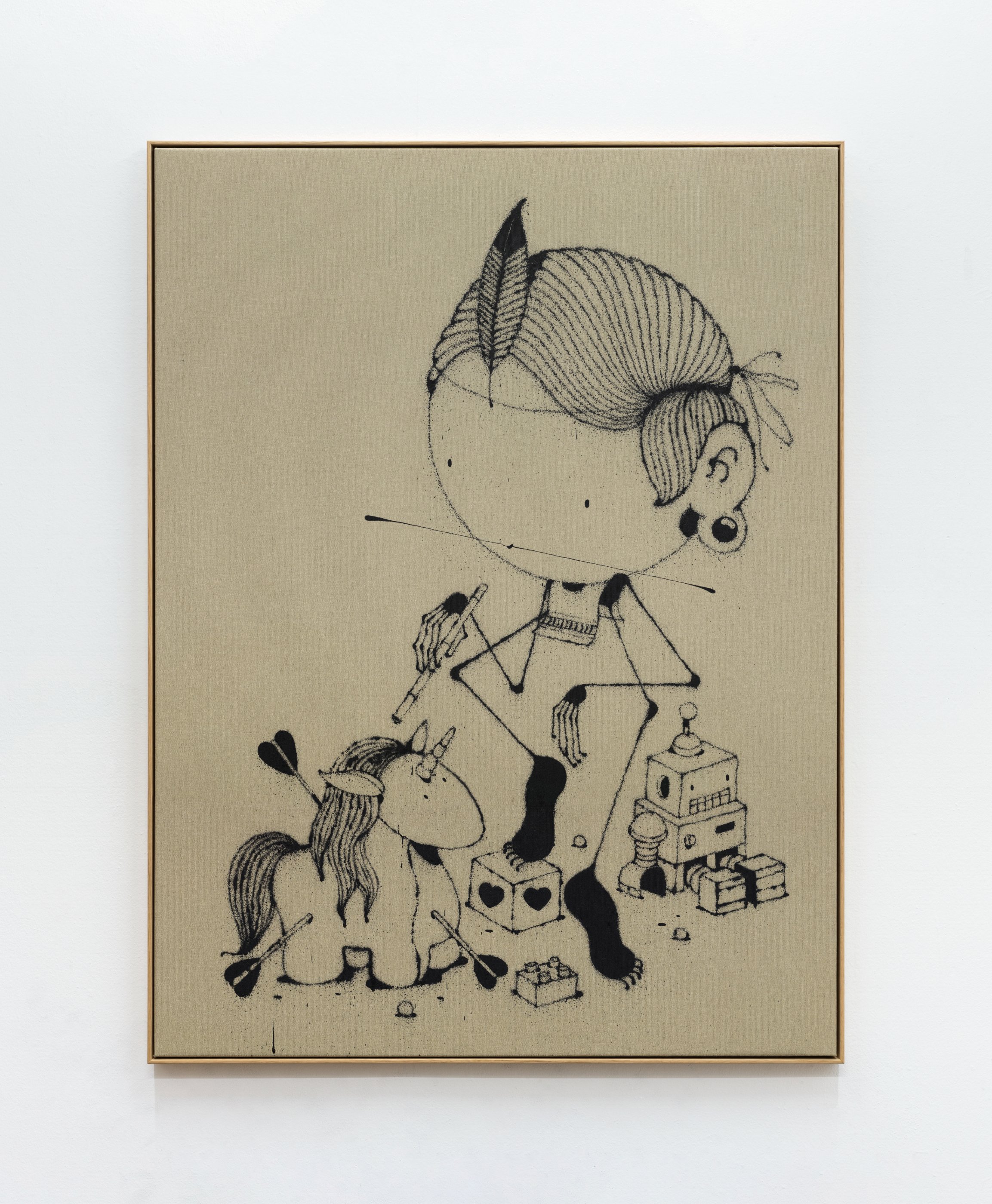 Ses toiles, peintes à la bombe de peinture, héritent de son parcours urbain et insufflent aux figures précolombiennes une vitalité contemporaine, brute et spontanée. Face à elles, les sculptures en bronze s’imposent comme des présences intemporelles. Noble et naturel, ce matériau parle directement avec le sujet de l’exposition : il évoque la mémoire ancestrale tout en affirmant une permanence universelle, celle de notre désir d’aimer, de rire et d’exister avec délicatesse. Cette série d’œuvres uniques et inédites est le résultat d’une collaboration fructueuse entre AFAT et la galerie Artivistas qui, dans sa mission de créer des ponts entre les scènes artistiques françaises et latino-américaines, a donné carte blanche à l’artiste pour nous livrer sa propre lecture des cultures d’Amérique Latine.